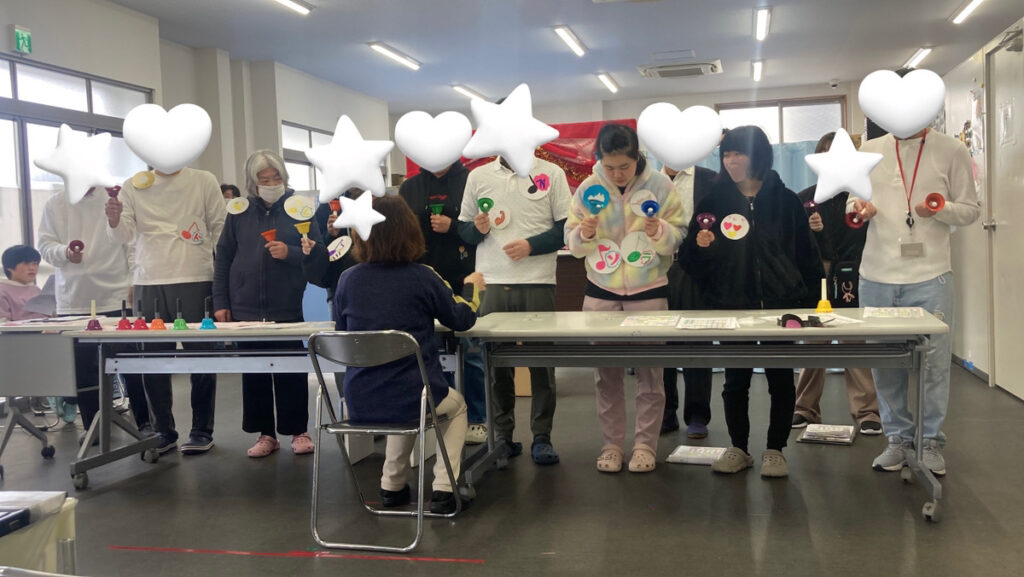 講師(支援員)による練習は初挑戦の利用者さんも覚えるのが大変だったとか…。毎日練習を重ね、発表会では「きらきら星」「星に願いを」「ドレミ」など素敵な音を奏でていただきました👏